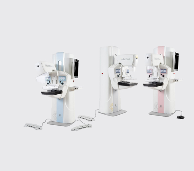 The Helianthus series of full-field digital mammography systems includes three different configurations that enable 2D and 3D breast screening and diagnostics using the most accurate and comprehensive methods. Helianthus DBT and Helianthus are also equipped for dual-energy or contrast-enhanced mammography.